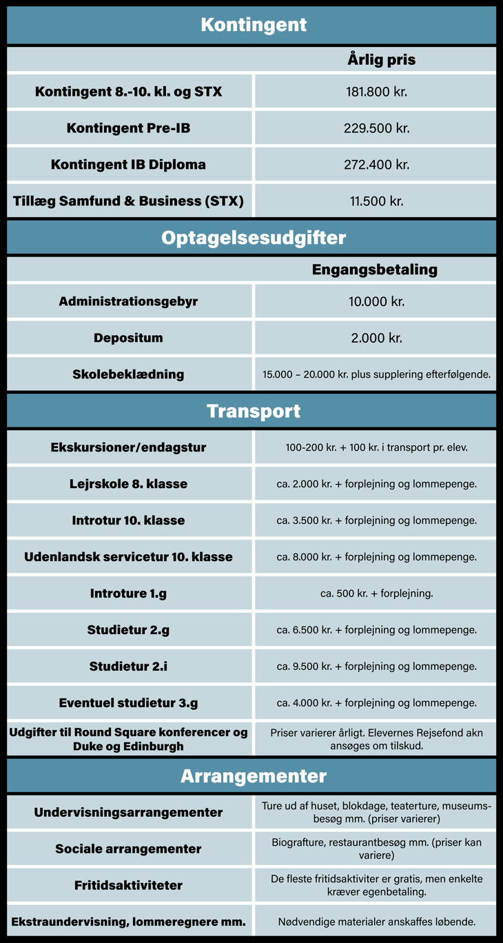 At være kostelev på Herlufsholm Skole indebærer en række udgifter, der dækker skolens høje faglige standarder og unikke tilbud. Som kostelev inkluderer de største poster skolekontingent, kost og logi samt adgang til skolens faciliteter, undervisning og fritidsaktiviteter. Derudover vil der være udgifter til ekskursioner, arrangementer og uniform. Herlufsholm prioriterer gennemsigtighed og tilbyder en detaljeret oversigt over skolens udgifter, så du får fuldt indblik i, hvad du skal forvente økonomisk, når du vælger en uddannelse i topklasse.