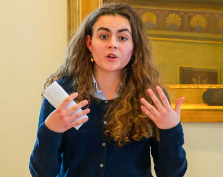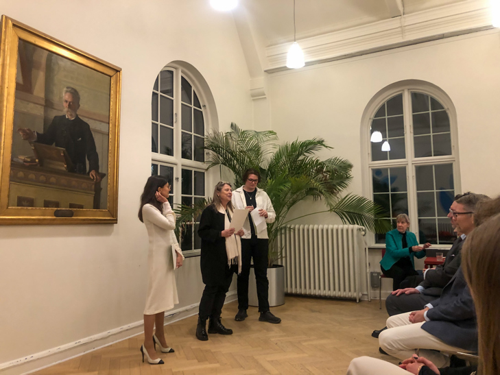 Dernæst blev dommerne præsenteret: Søs Haugaard, lektor ved Københavns Universitet, og Lucas Scavenius, alumni fra International Public Speaking Competition.
