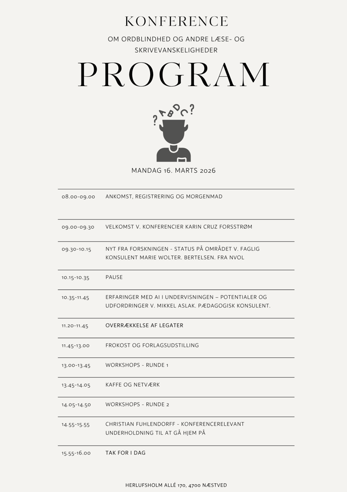 Få en dag for alle med interesse for uddannelse og læring inden for ordblindhed og andre læse- og skrivevanskeligheder.